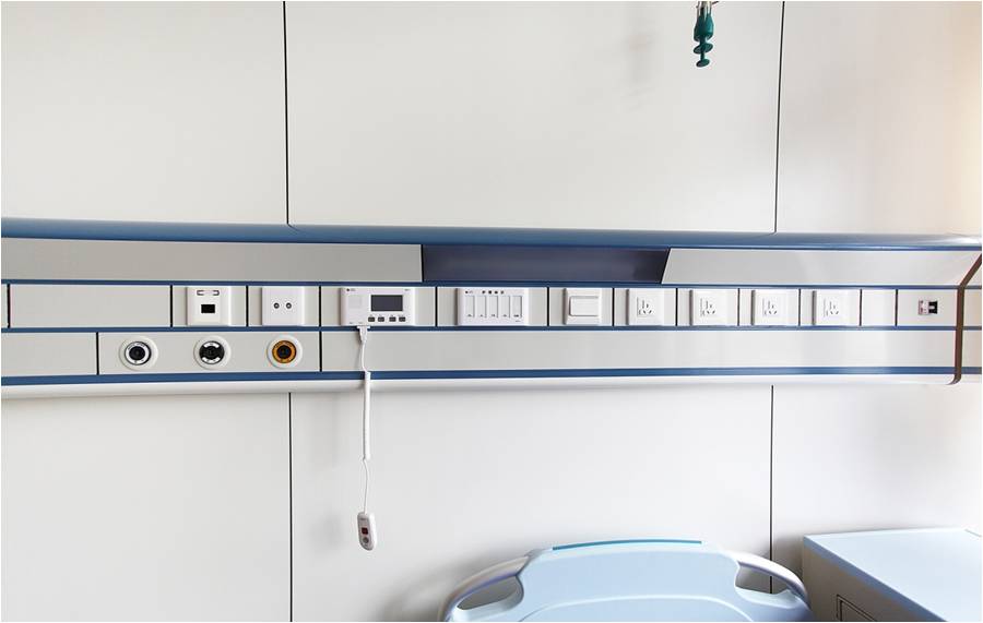 設備帶上集各種氣體終端、醫(yī)用呼叫、電源插座、床頭燈于一體,使病房顯得整齊美觀。